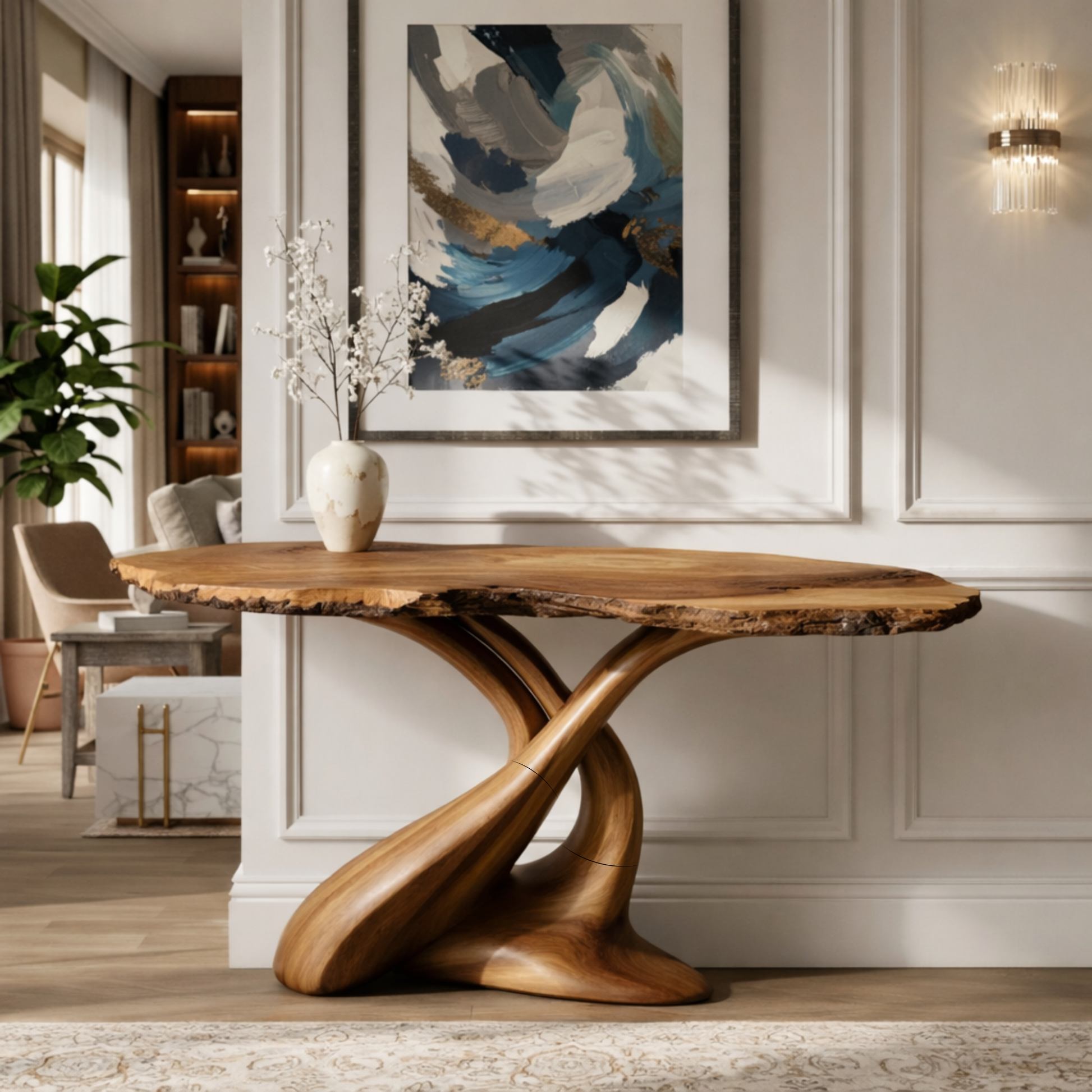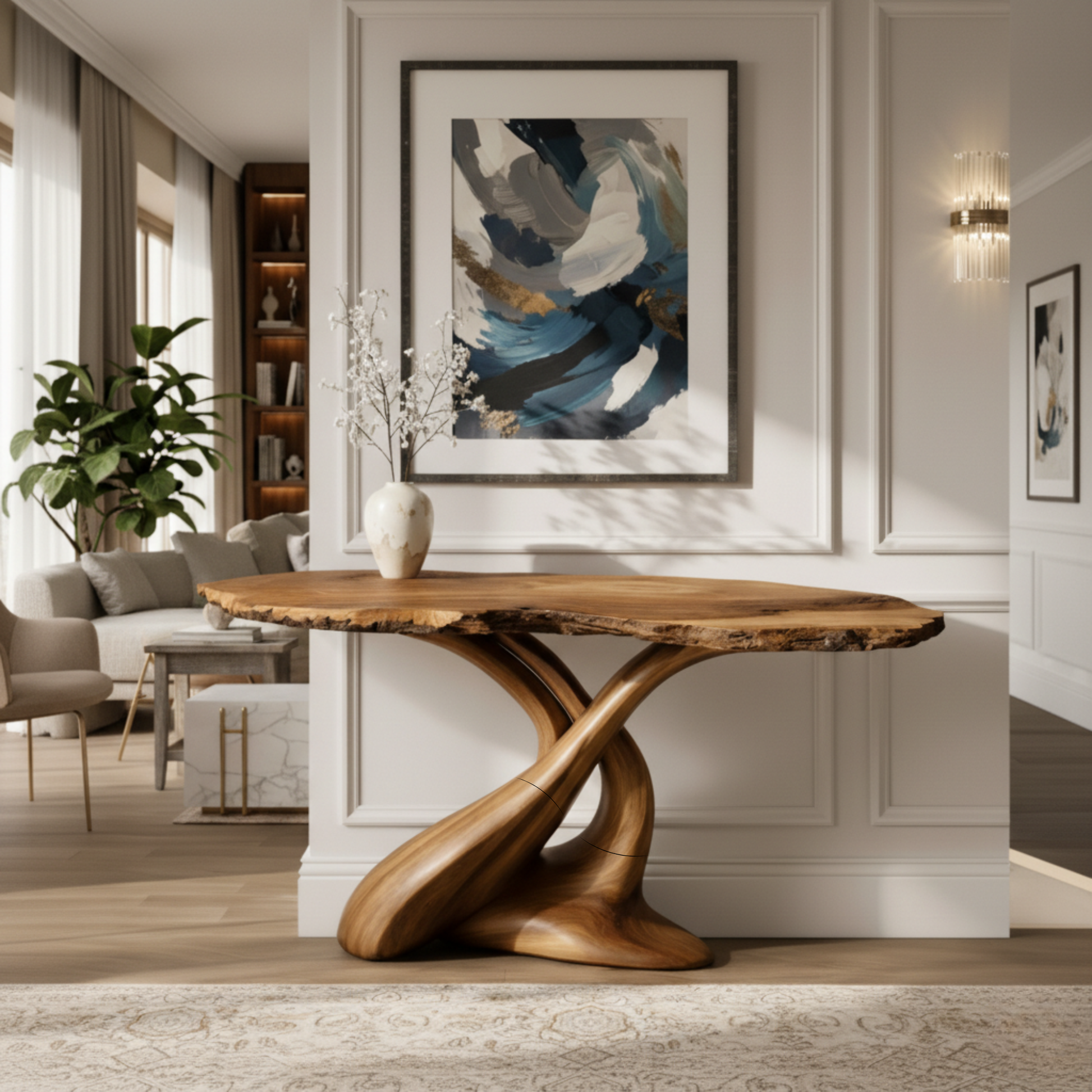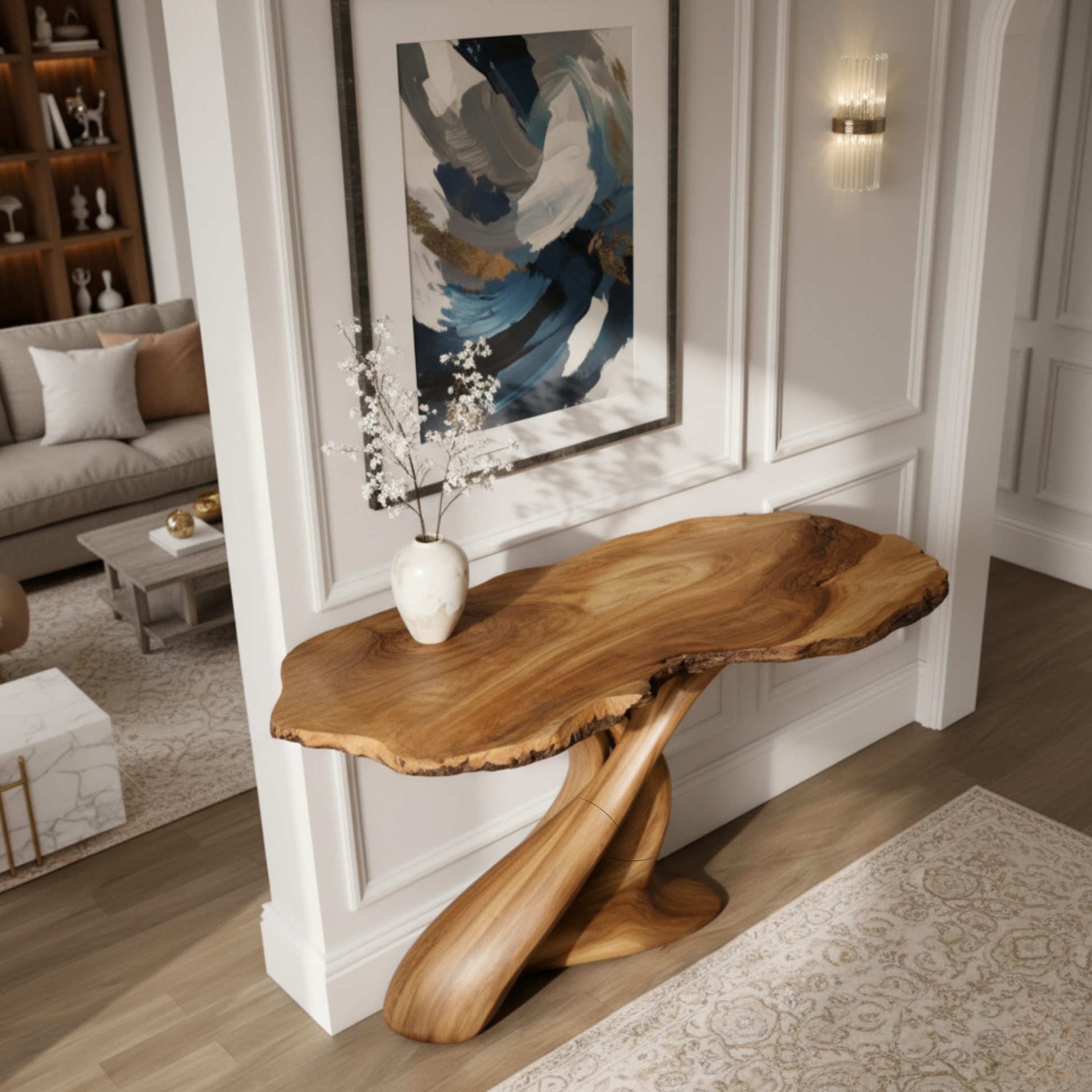 Luxury Live-Edge Solid Wood Console Table – Sculptural Organic Modern Design