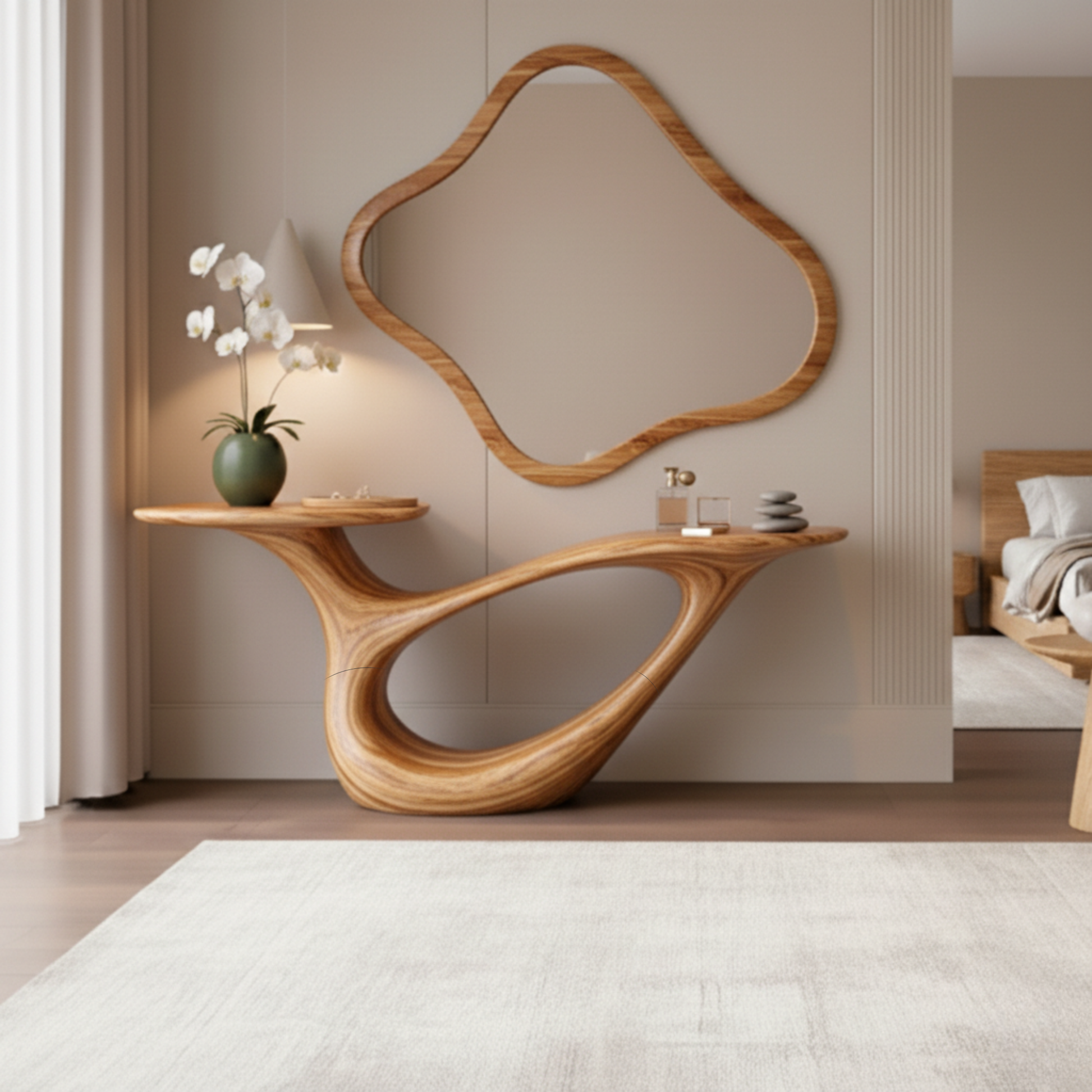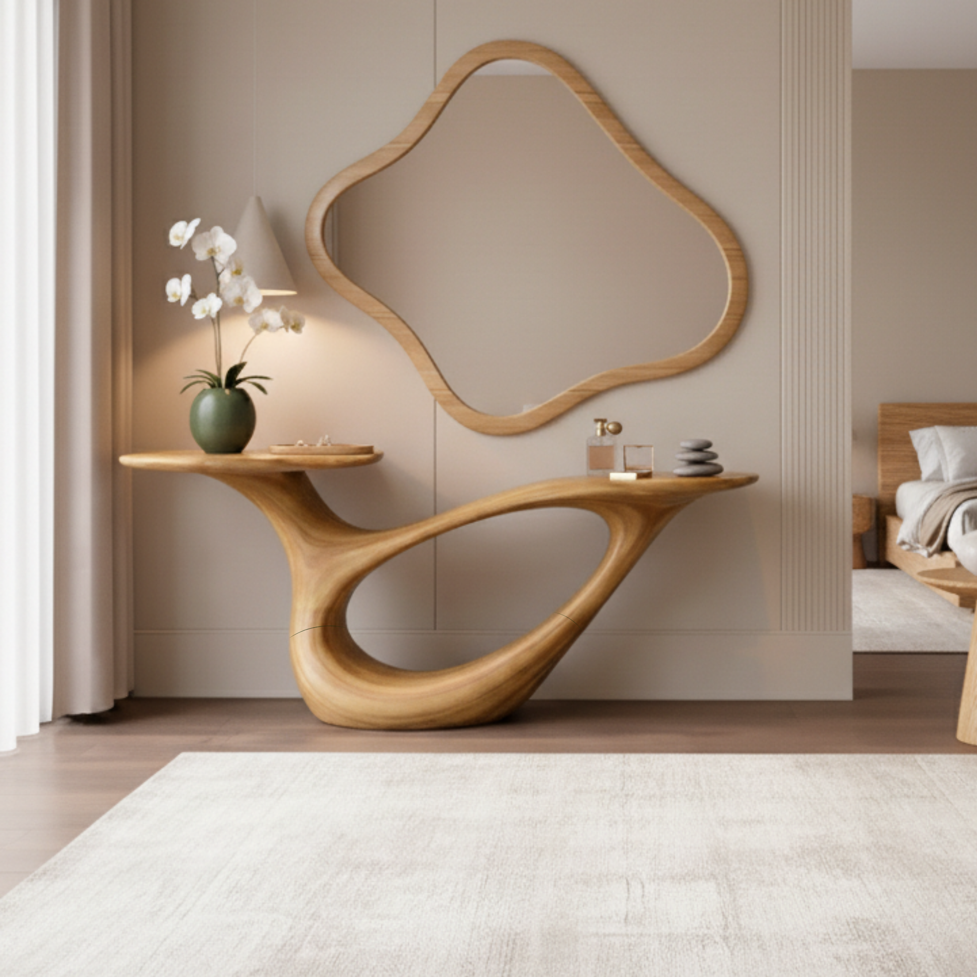 Sculpted Solid Wood Console Table – Organic Modern Luxury Furniture