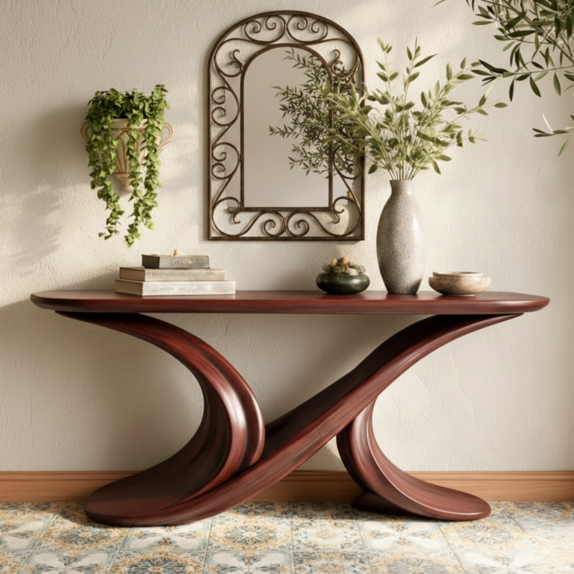 Sculptural Solid Wood Console Table – Dual Flow Curved Base